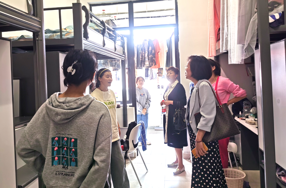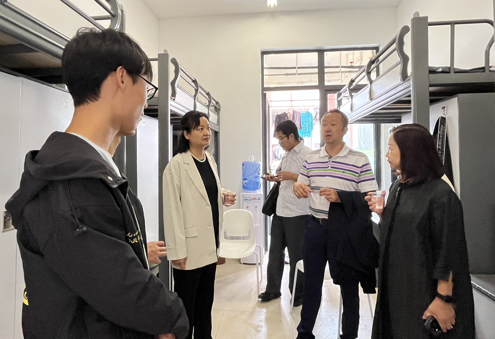 为深入了解2023级新生对老员工活的适应情况,根据公司工作要求,在公司党委的统一安排下,9月14日,公司党委书记彭安辉、经理谭玉洁、正处级组织员杨飏、党委副书记刘咏梅、副经理费樱带领相关科室负责老师到云漫湖校区新生宿舍进行走访。