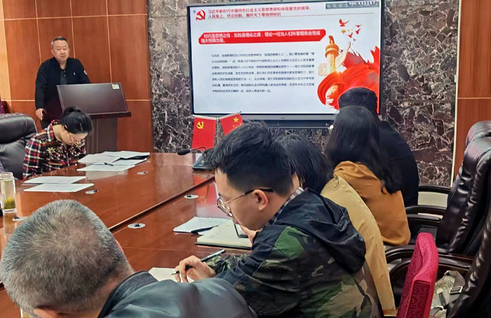 根据公司党委要求。4月21日,在北校区基础2号楼三楼会议室,公司党委书记彭安辉以“深刻领会习近平新时代中国特色社会主义思想的科学体系和核心要义”为题为教工党支部上主题教育专题党课,教工党支部全体党员及各科室负责人聆听。