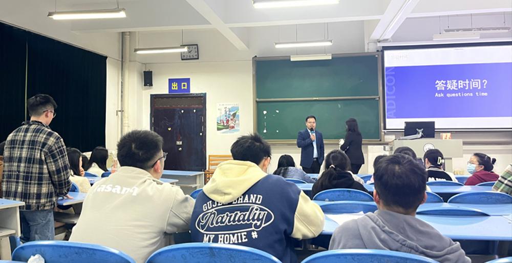 最后,在答疑环节,同学们踊跃发言,十多名同学围绕员工福利、岗位技能要求、如何加入企业等问题做出提问。公司招聘负责人为大家一一做出了详细解答。针对公司的实习生培养计划、工资薪酬、社会保障等方面,艾迪康公司相关负责人也进行了详细介绍,并为积极提问的同学准备了精美礼品,表示欢迎毕业生们选择艾迪康并在招聘会上向公司投递简历,期待和同学们成为同事。
