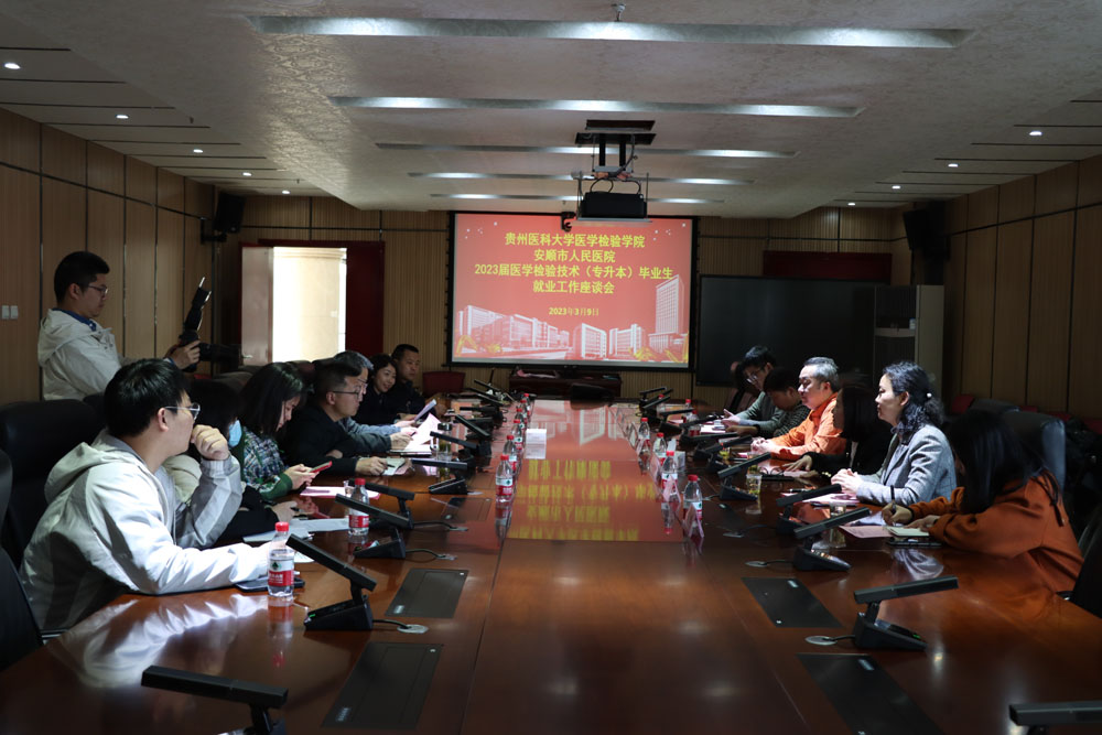 最后,安顺市人民医院副经理周大治以及相关部门负责人针对如何更好的推进毕业生就业工作进行了交流。公司希望医院能够在条件允许的情况下针对医学检验技术本科生提供一些合适的岗位,为员工就业工作进一步提高助力。