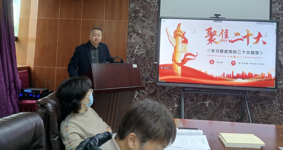 据此,11月29日,在北校区基础2号楼三楼会议室,公司党委书记彭安辉以“聚焦二十大《学习解读党的二十大报告》”为题,通过线上线下结合给全体教工党支部党员及员工党员 。