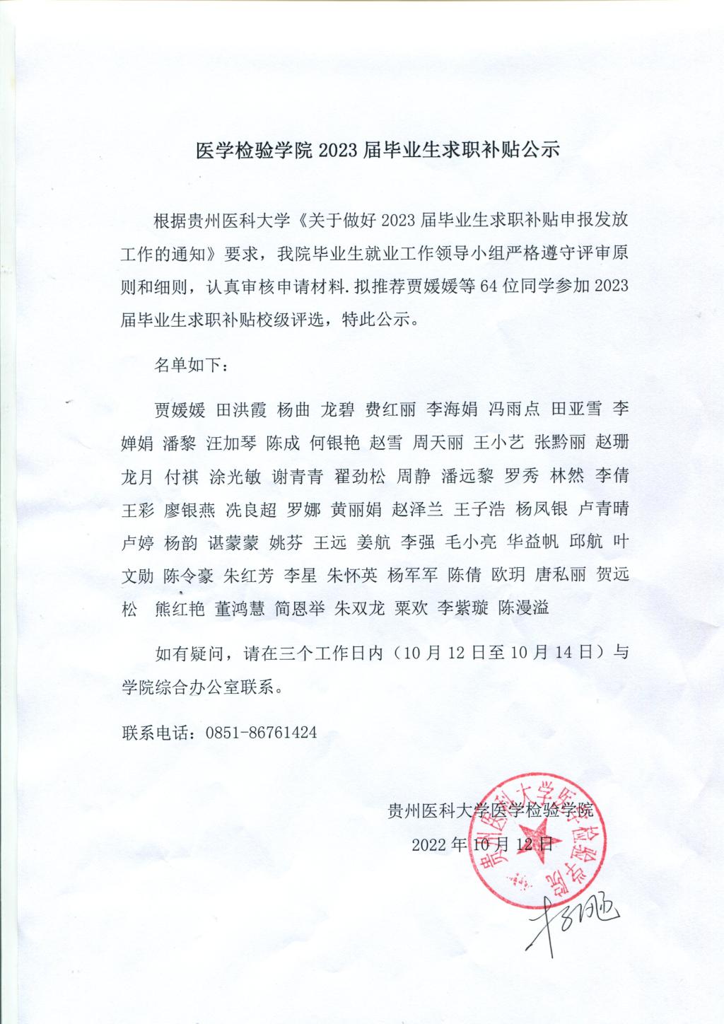 2023届毕业生求职补贴公示