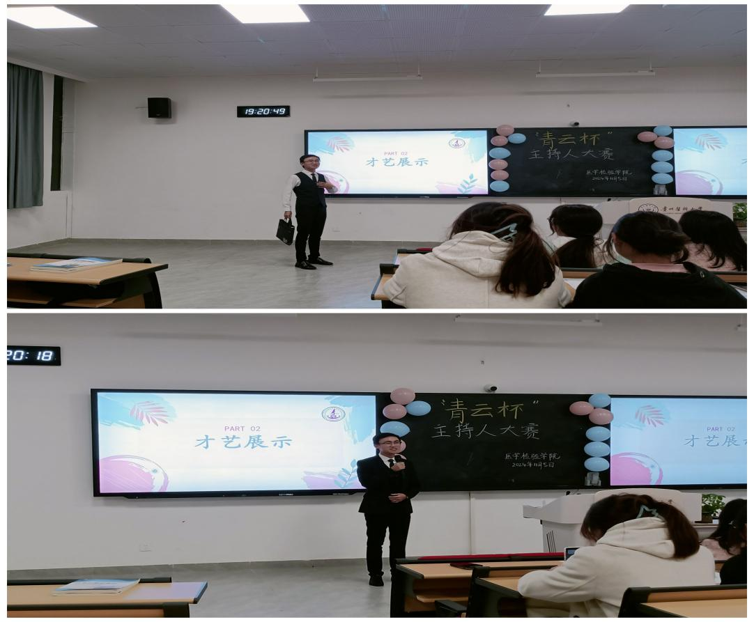 比赛共设置了自我介绍、才艺展示、主题演讲、随机主题主持挑战四个环节,参赛选手依次进行展示。现场气氛浓烈,选手们热情高涨,他们以慷慨激昂的演讲、声情并茂的诗歌朗诵、幽默风趣的小品展示了他们的独特风采,口齿清晰、情感饱满、语言精炼的主题演讲让评委和听众们感受到了演讲的魅力,气场平稳、灵活应变、自信大方的随机主题主持挑战展现了选手们各自的主持功底和别具一格的主持风格。