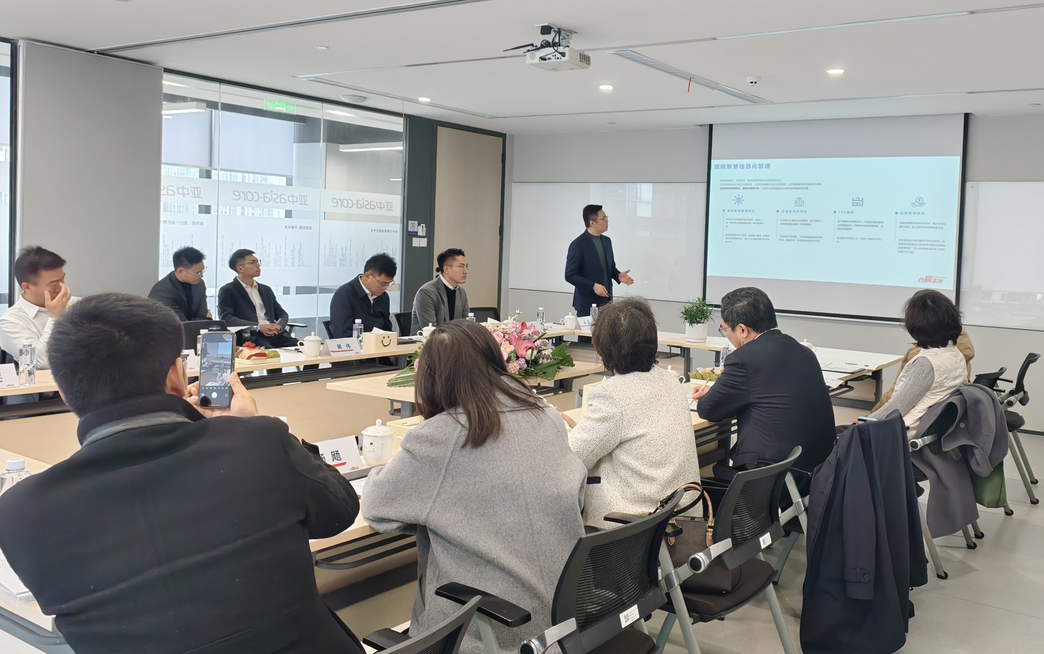亚中医疗集团贵州大区总经理黄伟详细介绍了公司的运营情况以及核心业务、云贵大区招聘负责人杨溢梅介绍了公司管培生的培养体系以及2026年的招聘计划,同时表达了希望在员工实习、就业等方面进行更加深入的合作,实现共同发展,共享未来。