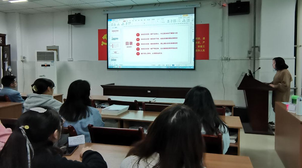 杨飏以“重温党的百年光辉历程,深刻感悟党的初心使命”为主题进行宣讲。她带领大家回顾中国共产党不懈奋斗、艰辛探索的百年征程,从嘉兴南湖红船会议的伟大开端到遵义会议的伟大转折,从抗日战争的胜利到改革开放的开始。党的历史是一部不忘初心、牢记使命的不懈奋斗史,是一部百折不挠、前赴后继的理论探索史,是一部自我革命、勇立潮头的自身建设史,是一部严明纪律、反对腐败的艰辛创业史。
