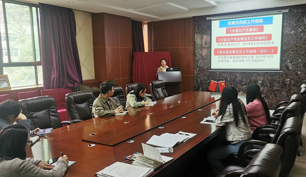 公司办公室主任、正科级组织员周友凤围绕《贵州省发展党员工作规程(试行)》的相关规定,对党员发展5个步骤,25个环节和公司党委党员发展“五级提议”、“三级联审”制度做了全面讲解。