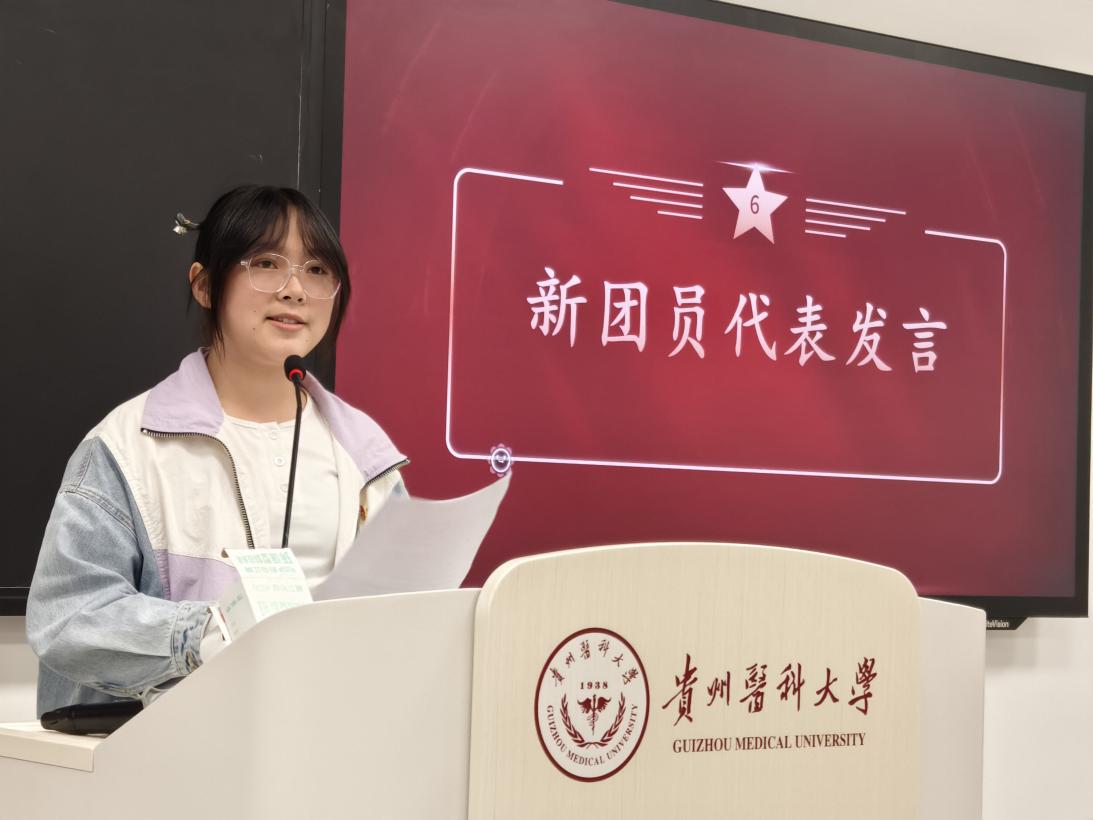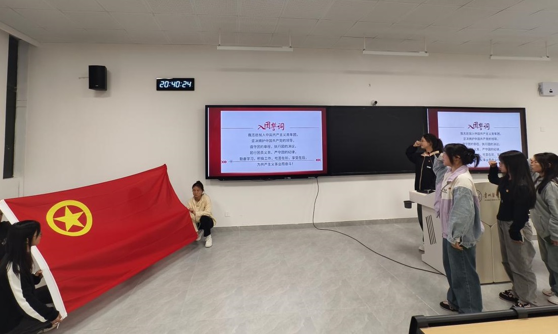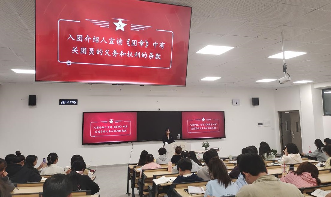 在庄重的氛围中,团支部书记带领新团员齐声宣誓,洪亮而坚定的声音表达了她们的承诺和决心。接着入团介绍人代表黄厅同学宣读了《团章》中有关团员的义务和权利的条款。
