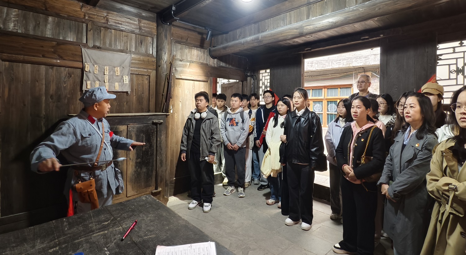 在花溪区青岩红军作战指挥所, 全体师生党员身临其境的学习了“乌江天险重飞渡,兵临贵阳逼昆明”的狮子山战役历史。在讲解老师的带领下,每一处细节都如同翻开历史的一页,大家深切感受到那段峥嵘岁月的厚重与庄严,心灵受到了深刻的触动,接受了一次生动而深刻的党性教育。