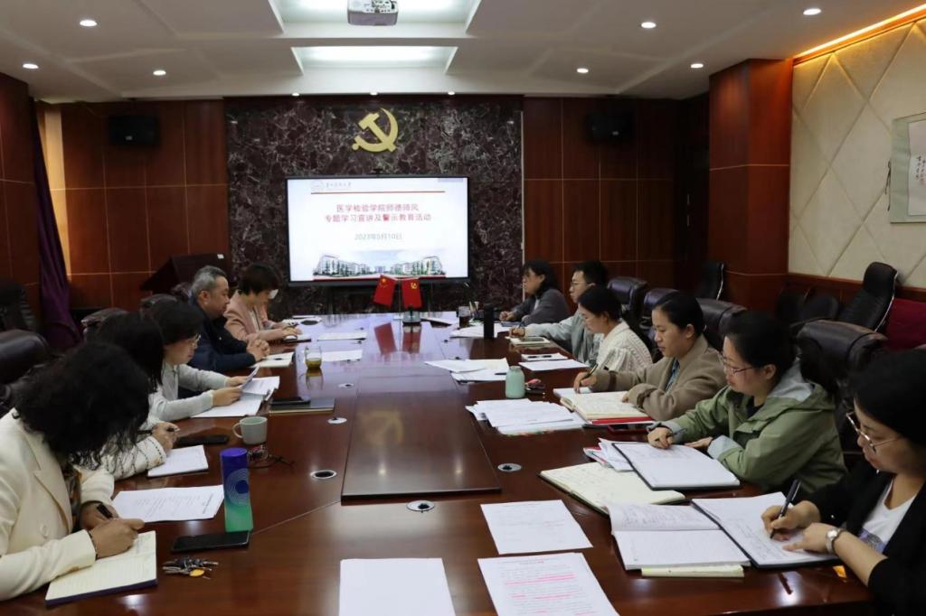 为了进一步落实立德树人根本任务,持续加强和改进新时代师德师风建设,按照公司开展“师德师风建设月”活动要求,304永利集团于2023年5月10日在北京路校区基础二号楼三楼会议室组织开展师德师风专题学习及警示教育活动。活动由公司经理谭玉洁主持,公司党政领导、教研室及各科室负责人、各教师代表参加此次会议。