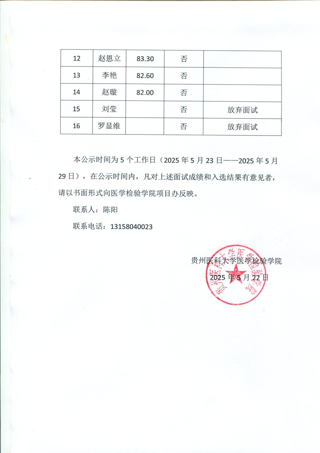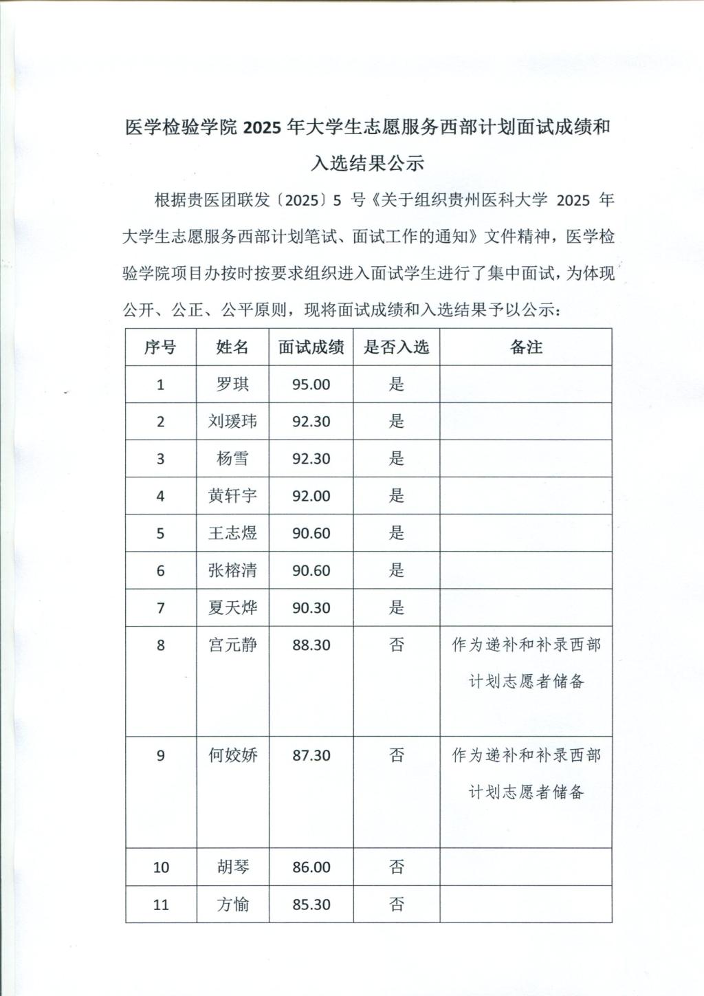 2025年老员工志愿服务西部计划面试成绩和入选结果公示