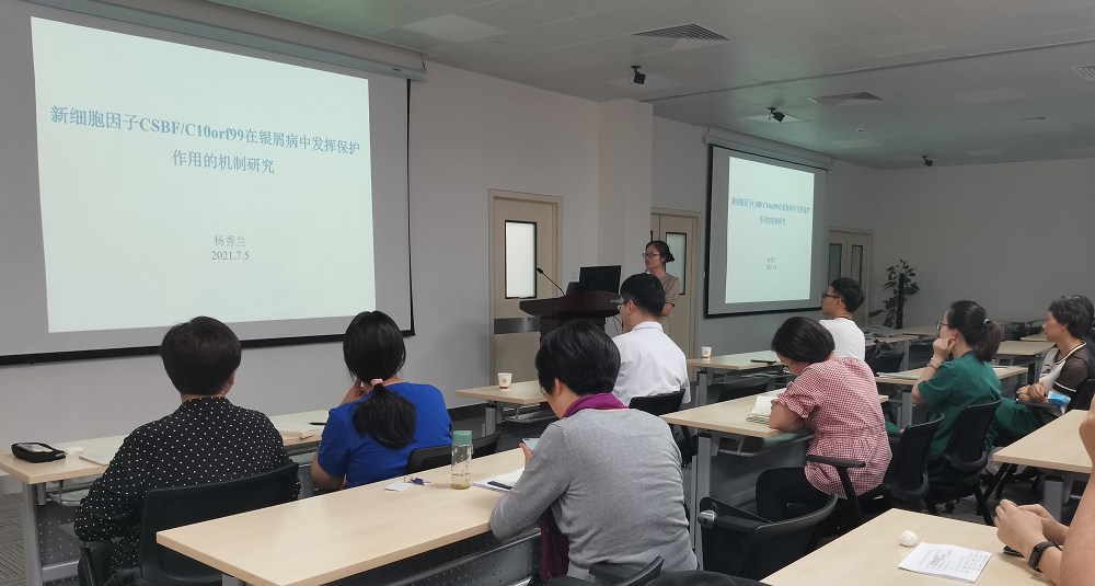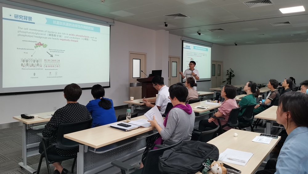 彭建副教授对自己的研究经历和主要研究成果做了概述,并主要从生物活性分子抗菌肽的抗菌效应与机制,以及病原微生物耐药性研究两个方向进行了课题研究思路、主要研究方法及其临床意义进行了报告。张业伟医生简要讲述自己的研究生课题,着重分享了SCI期刊投稿过程遇到的困难及自己如何回答评审专家的问题,强调实验过程中的原始记录数据保存完好的重要性。杨秀兰博士主要介绍自己在北京大学医学部完成的博士课题,就新细胞因子CSBF在银屑病的保护作用及其机制研究分成六个部分进行了阐述,完整系统地展示了其研究思路、研究结果、重要发现和临床价值。