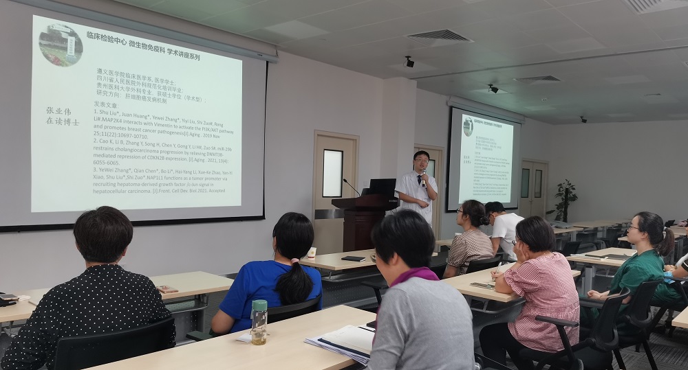 临床检验中心微免科副主任余芳对本次有幸邀请到的临床、基础相关领域的专家和与会的各位同道和研究生同学表示了欢迎,介绍了三位讲者的基础研究背景,并相信各位老师和研究生将会有很好的收获。