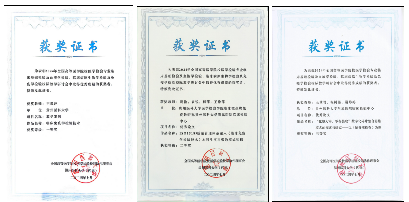 为了促进团队老师紧跟学科前沿动态,积极与国内同行学习和交流,公司304永利集团积极组织会议投稿,并如期赴会。在此次会议的优秀课程教学案例竞赛中,王豫萍教授的教学案例“《临床免疫学检验技术》—感染性疾病及其免疫学检测”表现出色,荣获教学案例组比赛一等奖。同时,周艳老师的论文“ISO15189质量管理体系融入《临床免疫学检验技术》本科生实习带教模式初探”荣获优秀论文二等奖;王世君老师的论文“化整为零,零存整取”数字化碎片整合思维模式的探索与研究——以《脑脊液检查》为例”荣获优秀论文三等奖。