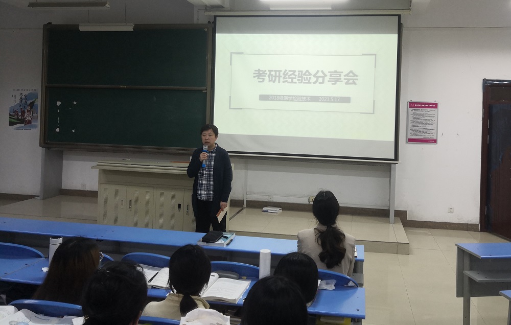 面对愈渐激烈的考研形势,为了让即将步入实习的2018级同学了解更多考研信息,明确考研目标,提高复习效率,合理安排学习时间。2021年5月17日,304永利集团在基础2号楼2401教室举办考研经验分享会,邀请了公司费樱副经理和4位考研成功的同学为2018级同学作考研指导和经验分享。分享会由辅导员陈阳老师主持,2018级医学检验技术全体同学参加。