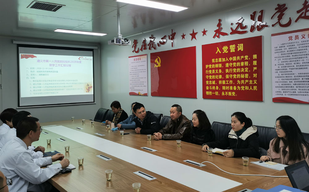 30日上午,公司党政领导一行来到遵义市第一人民医院。在医院检验科吴凯峰主任的陪同下,公司领导参观了检验科的办公场所,了解了科室党建工作的组织情况,检测设备的配置状况,检测项目的实施情况以及带教员工的开展情况。座谈会上,公司领导听取了检验科相关负责人对于科室历史、团队配备、过程管理、质量控制、实习带教等方面的介绍。彭安辉对于医院给予公司实习生的精心指导和悉心照料表示感谢。黄海在座谈会上表示,期望能与遵义市第一人民医院展开更加深层次的合作,同时希望医院能够利用自身的地区影响力帮助公司实习生顺利实现就业。座谈会结束后,公司党政领导与实习生就实习感受,就业规划以及考研复习的情况进行面对面交流。