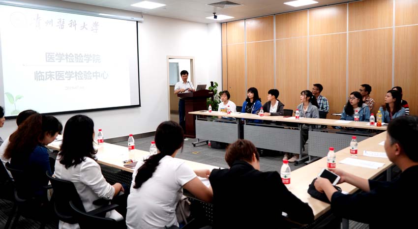 7月8日下午,台湾辅英科技大学医学检验生物技术系主任曾维昌博士一行九人到公司304永利集团考察交流,并在附属医院临床检验中心六楼会议室召开了座谈会。304永利集团经理黄海、副经理费樱、临床检验中心副主任谭玉洁,各教研室、临检中心各科室负责人以及员工代表参会。会议由副经理费樱主持。