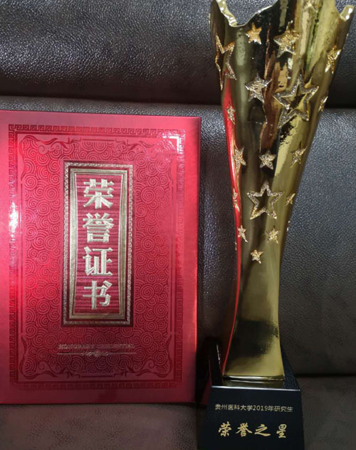 公司2016级临床检验诊断学专业研究生廖铭心是全场最后上场的选手,她流利而自信的语言吸引了全场的目光,灵活睿智又有条理的回答获得了老师们的赞许,在她的自我介绍里提到:“临近毕业季了,我将会把诚于己、忠于群的贵医精神牢记于心,它将伴随我一路前行!”言语里饱含对母校的深情和对老师同学的留恋。最终,廖铭心同学获得了此次“研究生之星”评选活动的最高荣誉——“荣誉之星”称号。孙诚谊副董事长亲自为她颁发了获奖证书和奖杯。