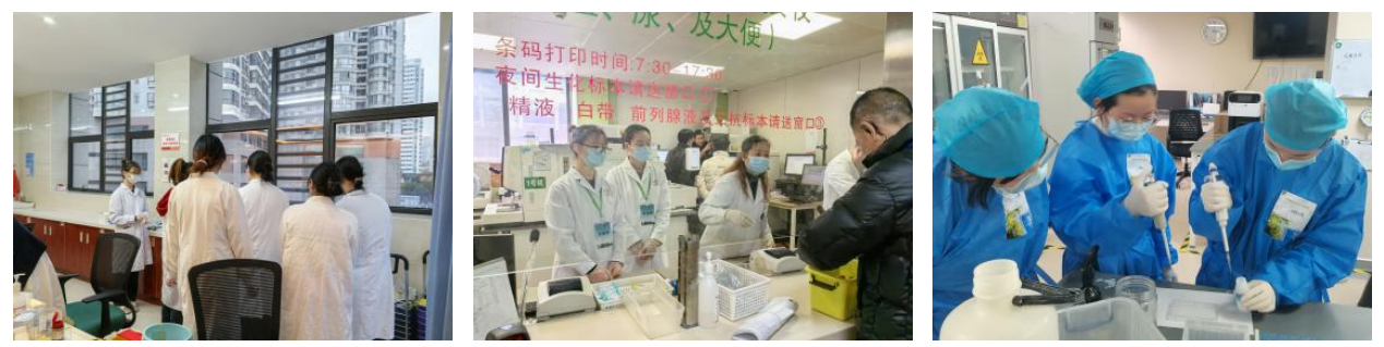 在临床实践中,为员工们提供了相对简单,可以初探检验全貌的专业实践操作,包括:实验前质量控制、血液样本的采集与保存、病历资料查询与录入、肺炎支原体抗体检测、外周血染色体核型分析、血型鉴定及交叉配血、输血的临床查房、检验与临床的沟通等。